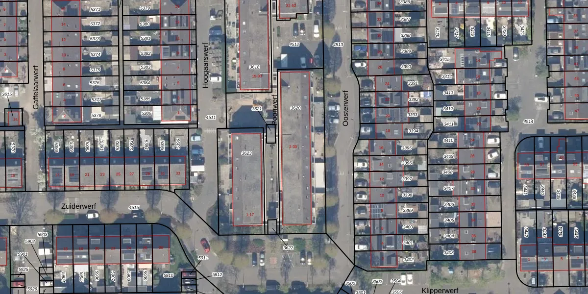 Poonwerf 18 is gelegen op kadastraal perceel GDA01M3620. Deze kadastrale aanduiding is uniek en wordt gebruikt door het Kadaster om eigendomsrechten en andere zakelijke rechten vast te leggen. Het perceel maakt onderdeel uit van de kadastrale gemeente Gouda.