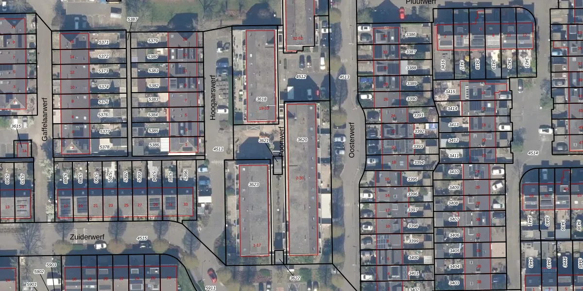 Het perceel waarop Poonwerf 20 staat heeft een oppervlakte van 881 m². Dit is een groot perceel. De perceeloppervlakte wordt geregistreerd door het Kadaster. Gedetailleerde informatie over de maten van dit perceel kunt u vinden in het rapport Kadastrale kaart met maatvoering van Poonwerf 20.