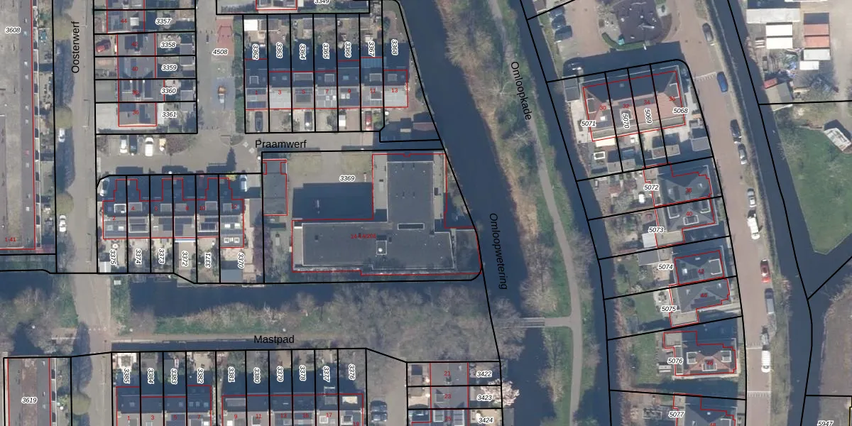 Praamwerf 14-104 is gelegen op kadastraal perceel GDA01M3369. Deze kadastrale aanduiding is uniek en wordt gebruikt door het Kadaster om eigendomsrechten en andere zakelijke rechten vast te leggen. Het perceel maakt onderdeel uit van de kadastrale gemeente Gouda.