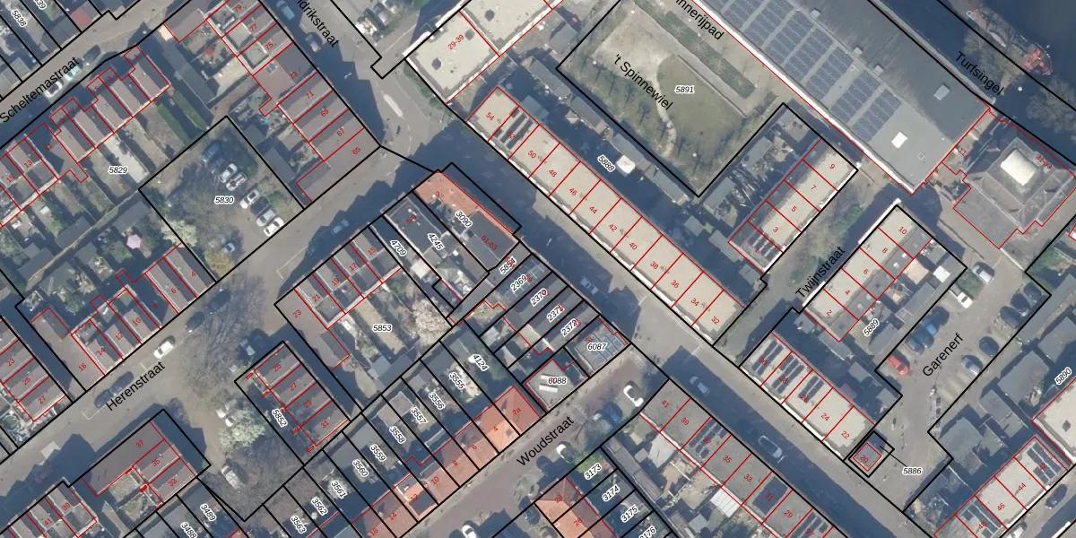 Het adres is gelegen op perceel 2369 in de sectie E en de kadastrale gemeente Gouda. De kadastrale aanduiding is aldus GDA01-E-2369. Het perceel is kleiner dan gemiddeld in Gouda. Het perceel is 89 m² groot, terwijl het gemiddelde ligt op 681,36 m². De grootste perceeloppervlakte in de kadastrale gemeente is 24,2 ha. De kleinste oppervlakte bedraagt 0 m². Dit is het enige adres dat aanwezig is op het perceel. In de Basisregistratie Kadaster (BRK) werden de grenzen van het perceel geregistreerd op 29-05-2007.