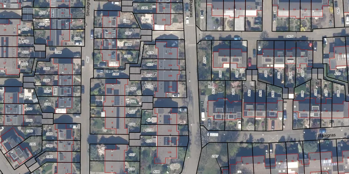 Raaigras 108 is gelegen op kadastraal perceel GDA01M4173. Deze kadastrale aanduiding is uniek en wordt gebruikt door het Kadaster om eigendomsrechten en andere zakelijke rechten vast te leggen. Het perceel maakt onderdeel uit van de kadastrale gemeente Gouda.