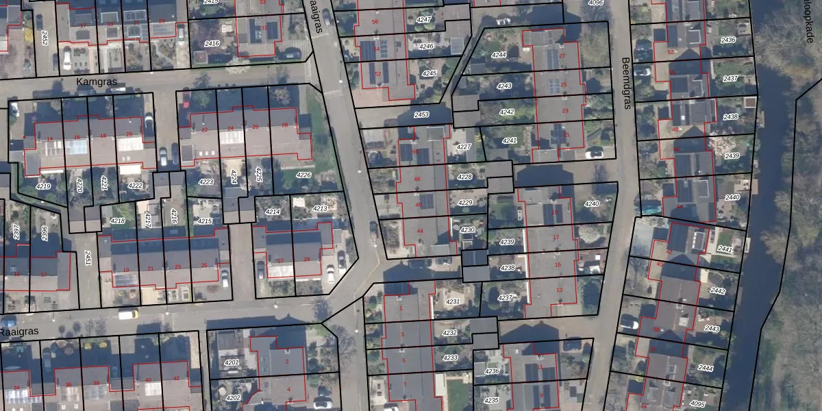 Gebruik de zoekbalk of klik op een perceel voor informatie over de adressen binnen dit perceel.