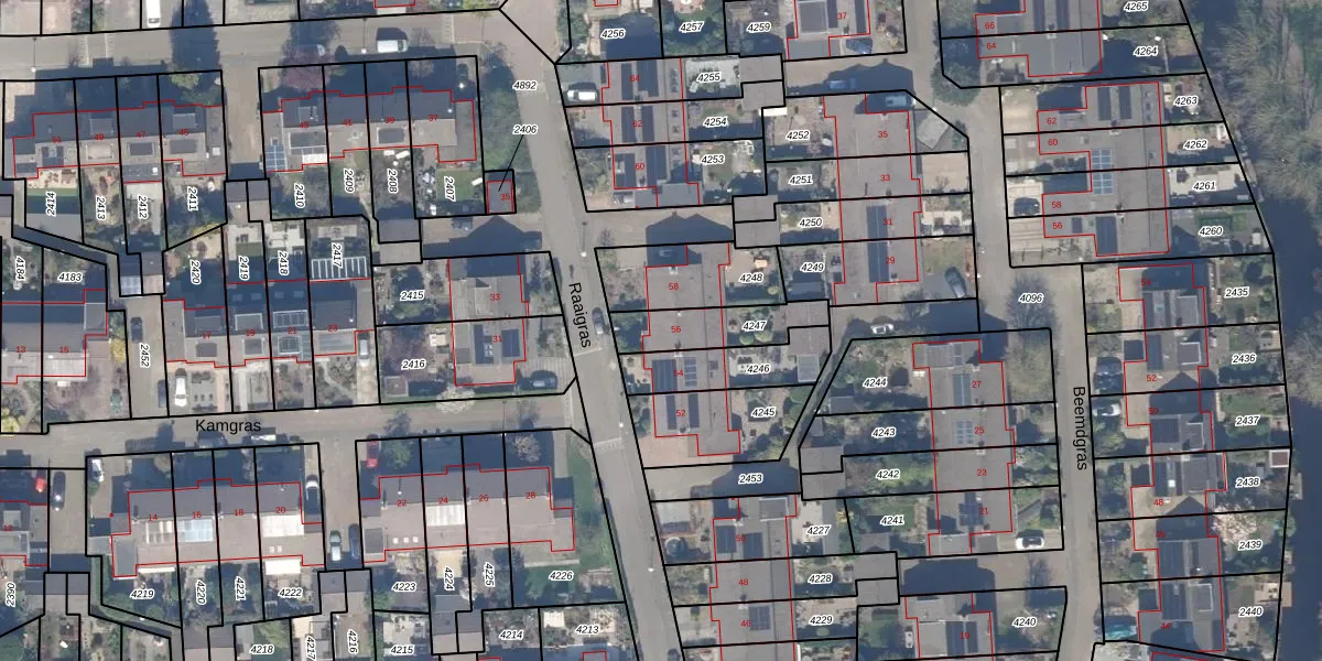 Raaigras 56 is gelegen op kadastraal perceel GDA01M4247. Deze kadastrale aanduiding is uniek en wordt gebruikt door het Kadaster om eigendomsrechten en andere zakelijke rechten vast te leggen. Het perceel maakt onderdeel uit van de kadastrale gemeente Gouda.