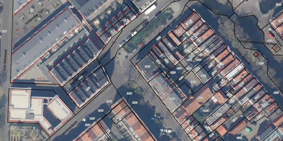 Het adres is gelegen op perceel 3565 in de sectie D en de kadastrale gemeente Gouda. De kadastrale aanduiding is aldus GDA01-D-3565. Het perceel is kleiner dan gemiddeld in Gouda. Het perceel is 200 m² groot, terwijl het gemiddelde ligt op 681,36 m². De grootste perceeloppervlakte in de kadastrale gemeente is 24,2 ha. De kleinste oppervlakte bedraagt 0 m². Op het perceel liggen in totaal 8 adressen. De laatste wijziging in het de Basisregistratie Kadaster (BRK) was op 02-09-1999.