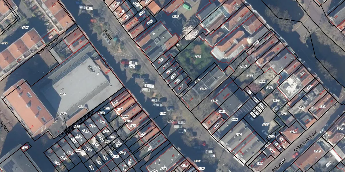 Het perceel waarop Raam 51 staat heeft een oppervlakte van 45 m². Dit is een klein perceel. De perceeloppervlakte wordt geregistreerd door het Kadaster. Gedetailleerde informatie over de maten van dit perceel kunt u vinden in het rapport Kadastrale kaart met maatvoering van Raam 51.
