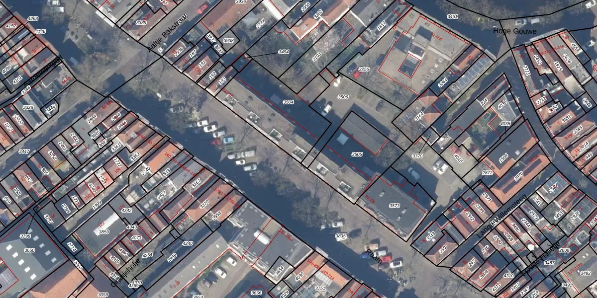 Het adres is gelegen op perceel 3504 in de sectie D en de kadastrale gemeente Gouda. De kadastrale aanduiding is aldus GDA01-D-3504. De gemiddelde perceelgrootte in Gouda is 680,8 m². Dit perceel is kleiner: de perceeloppervlakte bedraagt 665 m². Het grootste perceel in de kadastrale gemeente is 24,2 ha. Het kleinste perceel heeft een oppervlakte van 0 m². Op het perceel liggen in totaal 16 adressen. De huidige grenzen van het perceel zijn digitaal in de Basisregistratie Kadaster (BRK) geregistreerd op 05-02-1998.