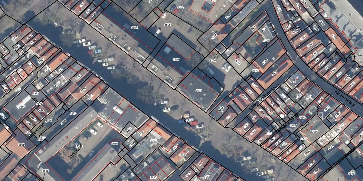 Het perceel waarop Raam 83 staat heeft een oppervlakte van 355 m². Dit is een groot perceel. De perceeloppervlakte wordt geregistreerd door het Kadaster. Gedetailleerde informatie over de maten van dit perceel kunt u vinden in het rapport Kadastrale kaart met maatvoering van Raam 83.