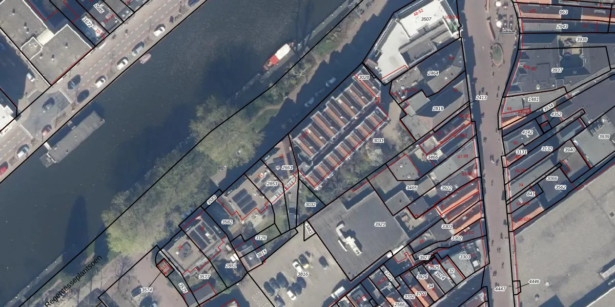 Regentesseplantsoen 33 is gelegen op kadastraal perceel GDA01B3031. Deze kadastrale aanduiding is uniek en wordt gebruikt door het Kadaster om eigendomsrechten en andere zakelijke rechten vast te leggen. Het perceel maakt onderdeel uit van de kadastrale gemeente Gouda.