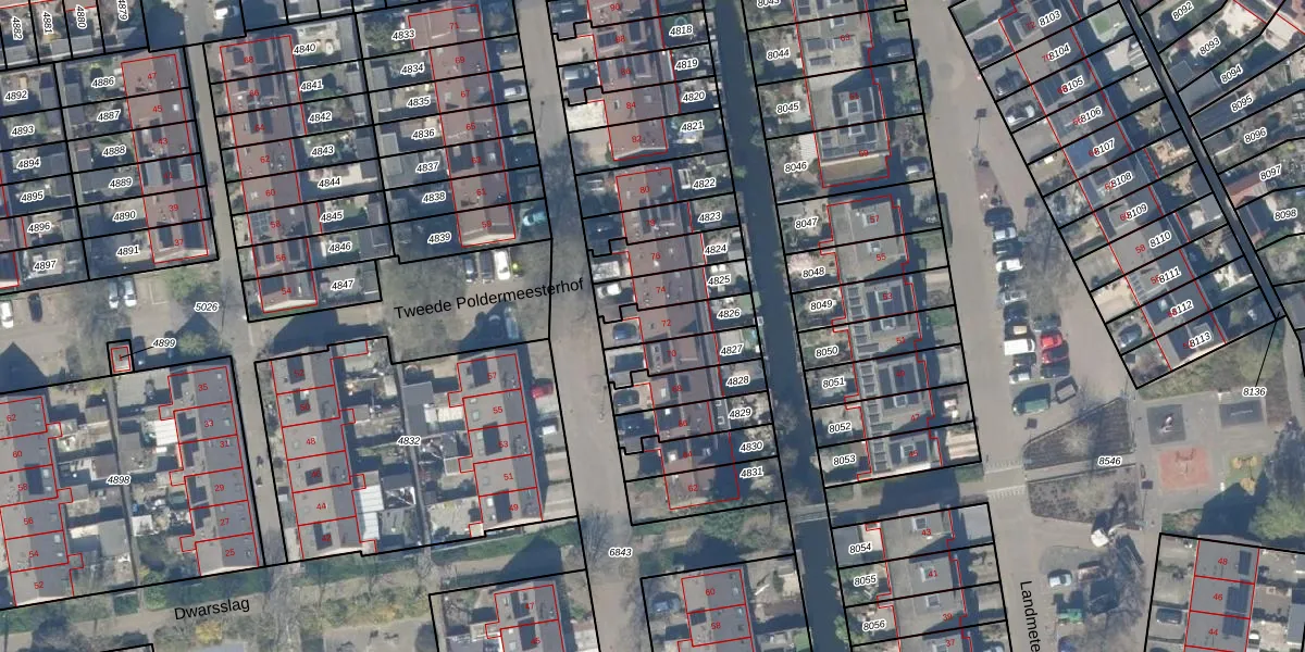 Gebruik de zoekbalk of klik op een perceel voor informatie over de adressen binnen dit perceel.