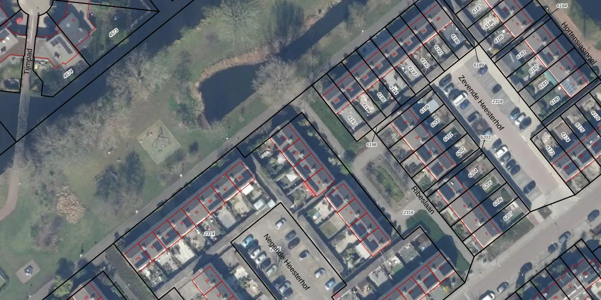 Het perceel waarop Ribeslaan 13 staat heeft een oppervlakte van 4772 m². Dit is een zeer groot perceel. De perceeloppervlakte wordt geregistreerd door het Kadaster. Gedetailleerde informatie over de maten van dit perceel kunt u vinden in het rapport Kadastrale kaart met maatvoering van Ribeslaan 13.