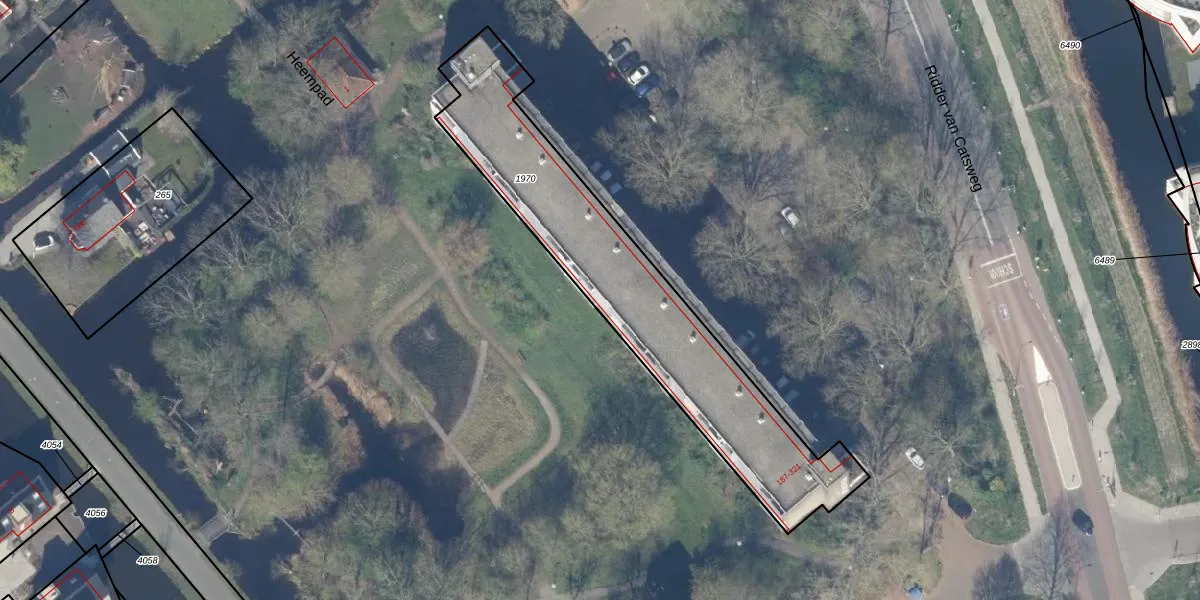 Ridder van Catsweg 321 is gelegen op kadastraal perceel GDA01M1970. Deze kadastrale aanduiding is uniek en wordt gebruikt door het Kadaster om eigendomsrechten en andere zakelijke rechten vast te leggen. Het perceel maakt onderdeel uit van de kadastrale gemeente Gouda.