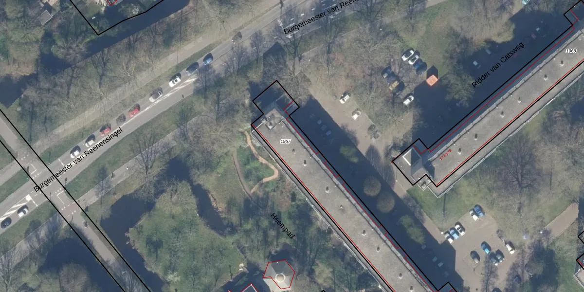 Het perceel waarop Ridder van Catsweg 545 staat heeft een oppervlakte van 1221 m². Dit is een zeer groot perceel. De perceeloppervlakte wordt geregistreerd door het Kadaster. Gedetailleerde informatie over de maten van dit perceel kunt u vinden in het rapport Kadastrale kaart met maatvoering van Ridder van Catsweg 545.
