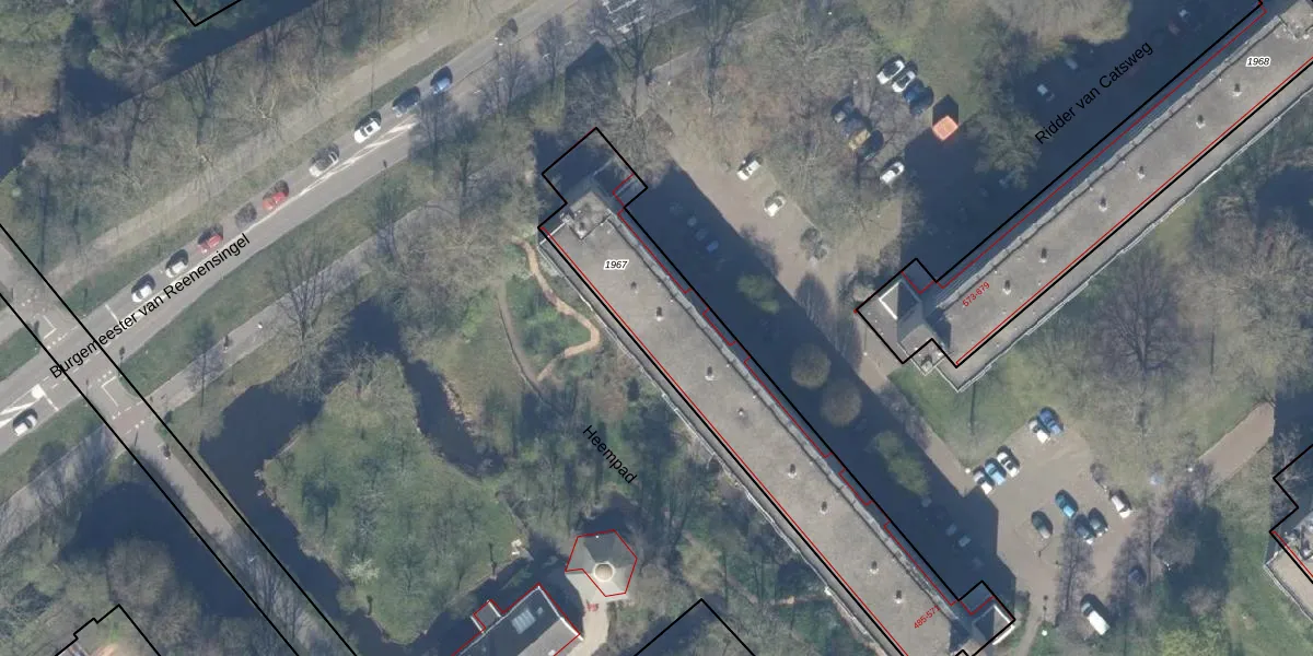 Het perceel waarop Ridder van Catsweg 557 staat heeft een oppervlakte van 1221 m². Dit is een zeer groot perceel. De perceeloppervlakte wordt geregistreerd door het Kadaster. Gedetailleerde informatie over de maten van dit perceel kunt u vinden in het rapport Kadastrale kaart met maatvoering van Ridder van Catsweg 557.
