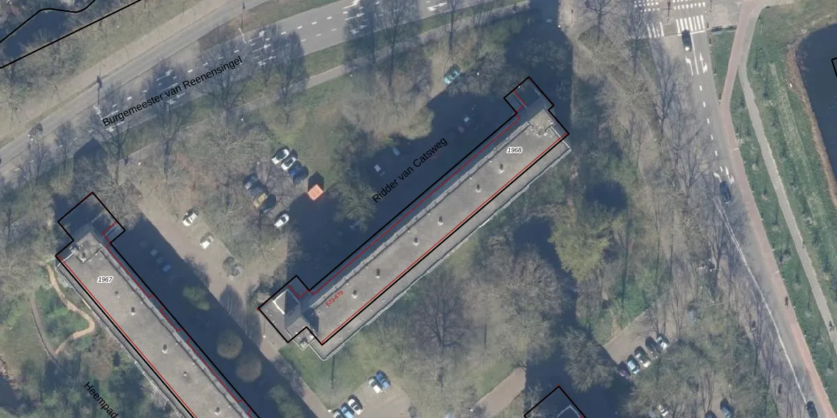 Het perceel waarop Ridder van Catsweg 577 staat heeft een oppervlakte van 1060 m². Dit is een zeer groot perceel. De perceeloppervlakte wordt geregistreerd door het Kadaster. Gedetailleerde informatie over de maten van dit perceel kunt u vinden in het rapport Kadastrale kaart met maatvoering van Ridder van Catsweg 577.