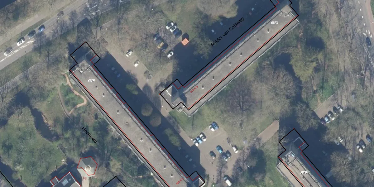 Het perceel waarop Ridder van Catsweg 641 staat heeft een oppervlakte van 1060 m². Dit is een zeer groot perceel. De perceeloppervlakte wordt geregistreerd door het Kadaster. Gedetailleerde informatie over de maten van dit perceel kunt u vinden in het rapport Kadastrale kaart met maatvoering van Ridder van Catsweg 641.