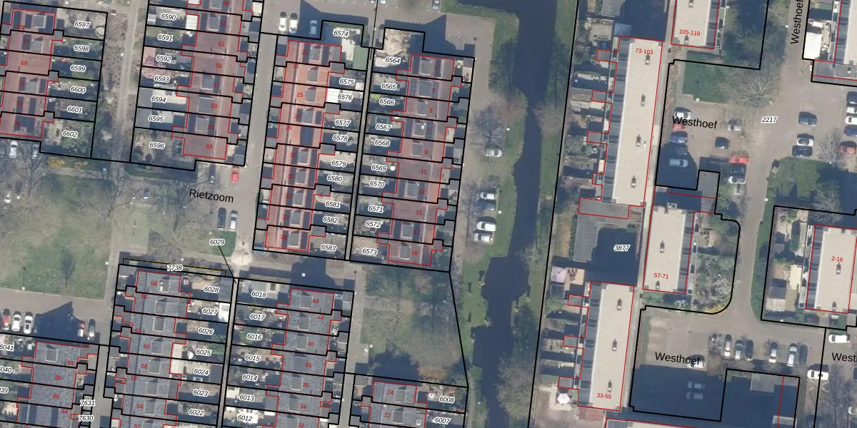 Het perceel waarop Rietzoom 15 staat heeft een oppervlakte van 112 m². Dit is een middelgroot perceel. De perceeloppervlakte wordt geregistreerd door het Kadaster. Gedetailleerde informatie over de maten van dit perceel kunt u vinden in het rapport Kadastrale kaart met maatvoering van Rietzoom 15.