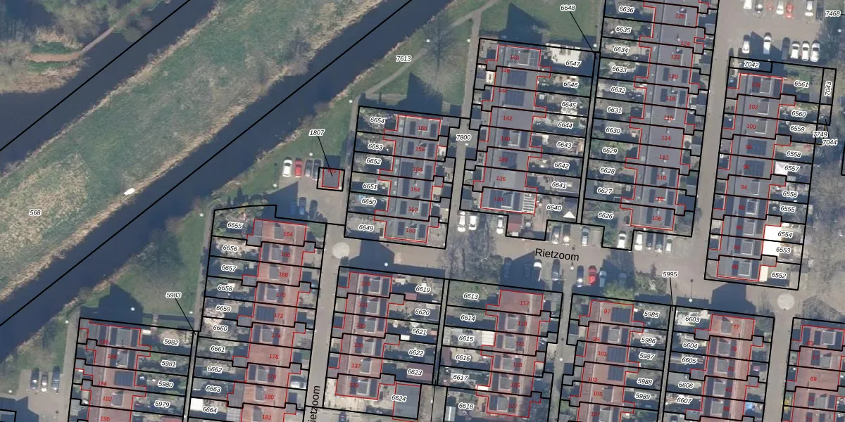 Rietzoom 152 is gelegen op kadastraal perceel GDA01M6650. Deze kadastrale aanduiding is uniek en wordt gebruikt door het Kadaster om eigendomsrechten en andere zakelijke rechten vast te leggen. Het perceel maakt onderdeel uit van de kadastrale gemeente Gouda.