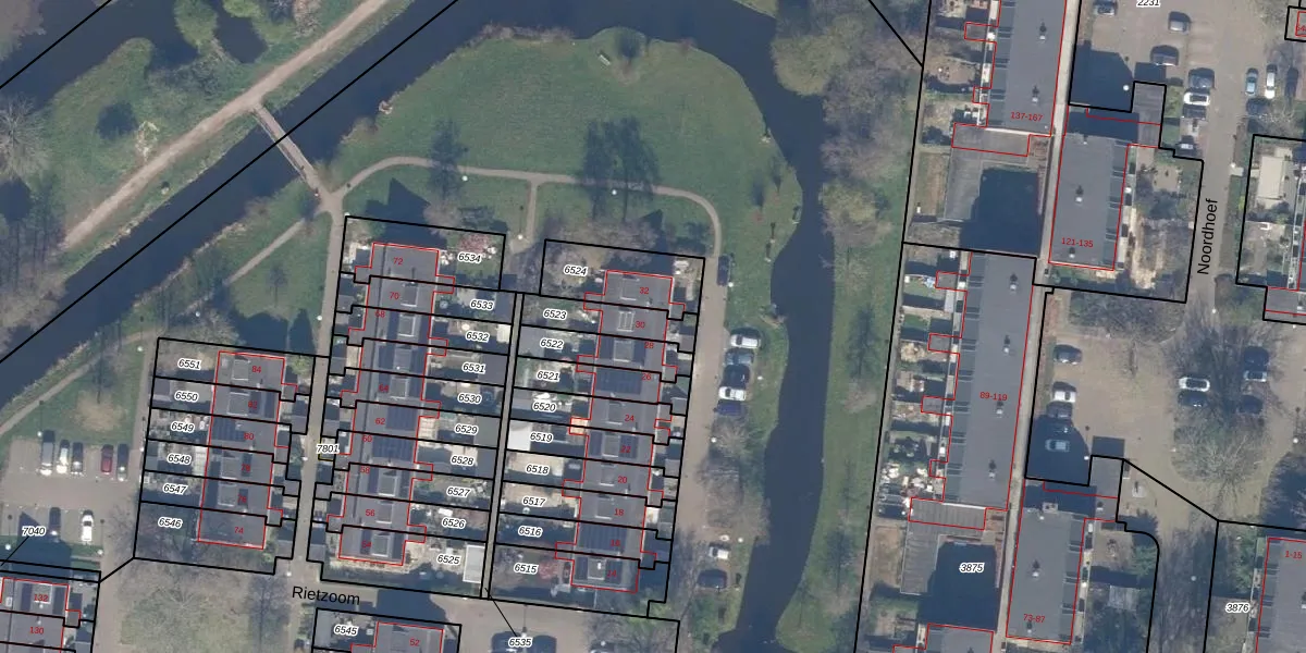 Gebruik de zoekbalk of klik op een perceel voor informatie over de adressen binnen dit perceel.