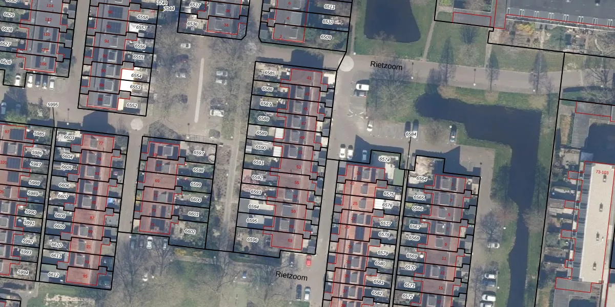 Rietzoom 51 is gelegen op kadastraal perceel GDA01M6590. Deze kadastrale aanduiding is uniek en wordt gebruikt door het Kadaster om eigendomsrechten en andere zakelijke rechten vast te leggen. Het perceel maakt onderdeel uit van de kadastrale gemeente Gouda.