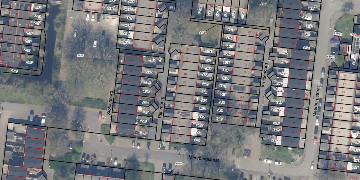 Rijnenburg 14 is gelegen op kadastraal perceel GDA01M6401. Deze kadastrale aanduiding is uniek en wordt gebruikt door het Kadaster om eigendomsrechten en andere zakelijke rechten vast te leggen. Het perceel maakt onderdeel uit van de kadastrale gemeente Gouda.