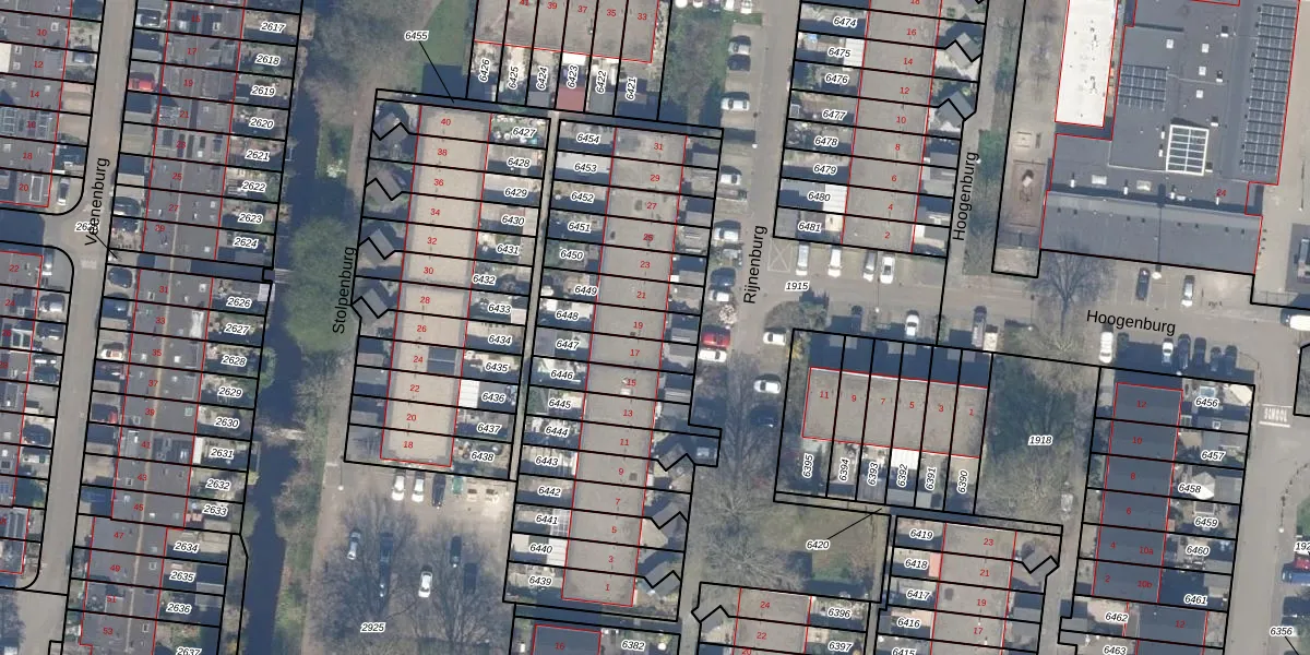 Rijnenburg 19 is gelegen op kadastraal perceel GDA01M6448. Deze kadastrale aanduiding is uniek en wordt gebruikt door het Kadaster om eigendomsrechten en andere zakelijke rechten vast te leggen. Het perceel maakt onderdeel uit van de kadastrale gemeente Gouda.
