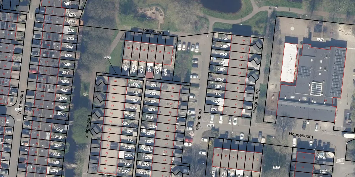 Rijnenburg 31 is gelegen op kadastraal perceel GDA01M6454. Deze kadastrale aanduiding is uniek en wordt gebruikt door het Kadaster om eigendomsrechten en andere zakelijke rechten vast te leggen. Het perceel maakt onderdeel uit van de kadastrale gemeente Gouda.
