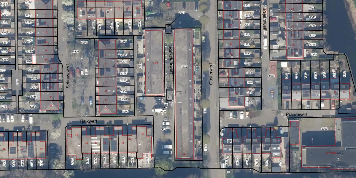 Het perceel waarop Rinkelaarwerf 21 staat heeft een oppervlakte van 1173 m². Dit is een zeer groot perceel. De perceeloppervlakte wordt geregistreerd door het Kadaster. Gedetailleerde informatie over de maten van dit perceel kunt u vinden in het rapport Kadastrale kaart met maatvoering van Rinkelaarwerf 21.