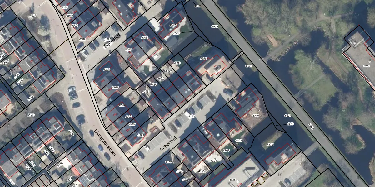 Gebruik de zoekbalk of klik op een perceel voor informatie over de adressen binnen dit perceel.