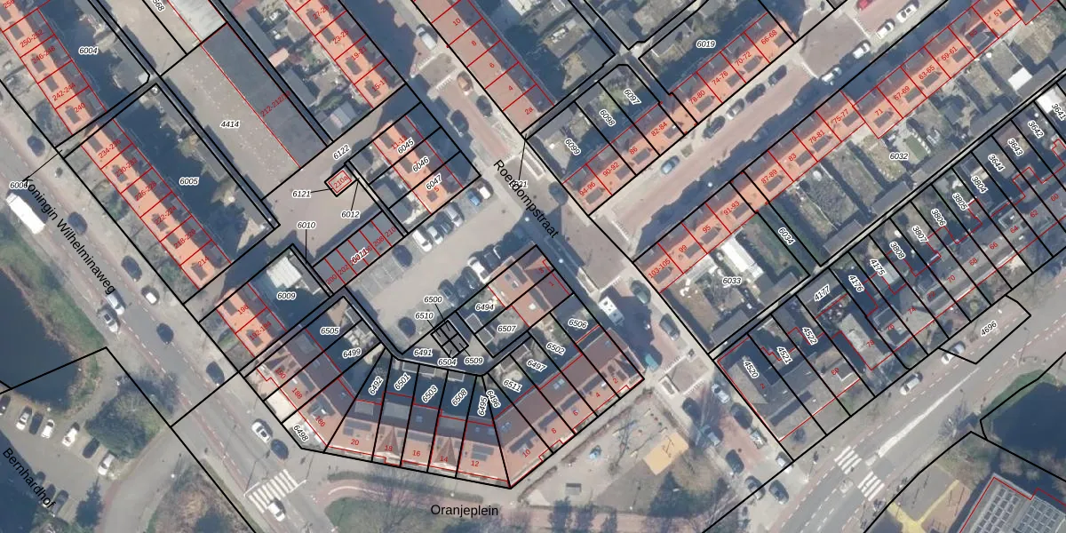 Gebruik de zoekbalk of klik op een perceel voor informatie over de adressen binnen dit perceel.