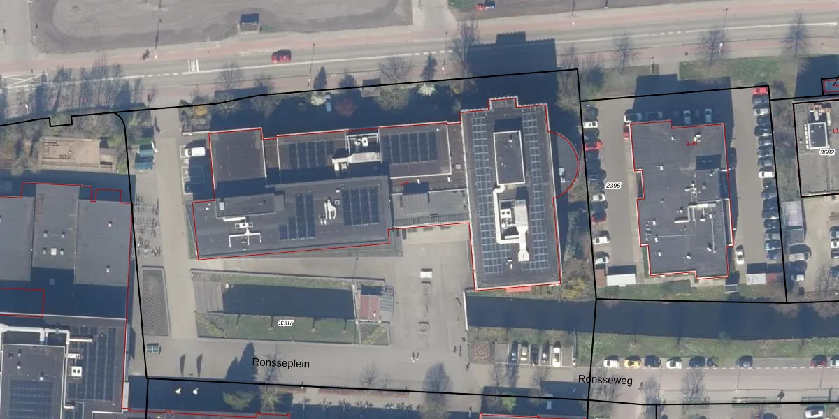 Het perceel waarop Ronsseplein 2 staat heeft een oppervlakte van 7765 m². Dit is een zeer groot perceel. De perceeloppervlakte wordt geregistreerd door het Kadaster. Gedetailleerde informatie over de maten van dit perceel kunt u vinden in het rapport Kadastrale kaart met maatvoering van Ronsseplein 2.