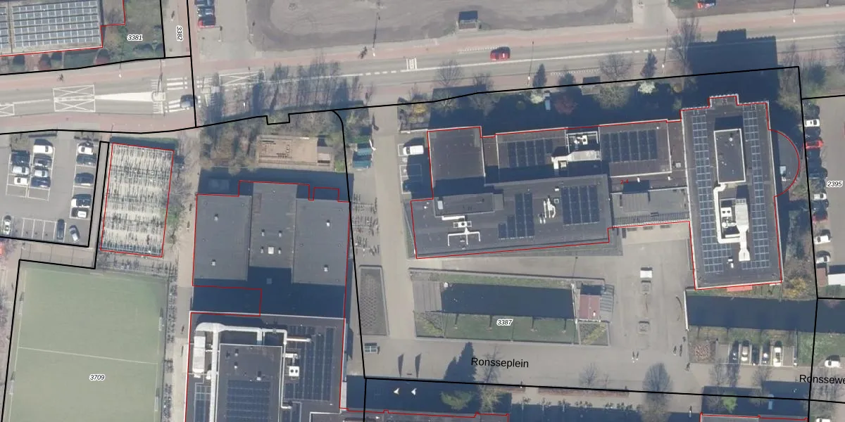 Het perceel waarop Ronsseplein 4 staat heeft een oppervlakte van 7765 m². Dit is een zeer groot perceel. De perceeloppervlakte wordt geregistreerd door het Kadaster. Gedetailleerde informatie over de maten van dit perceel kunt u vinden in het rapport Kadastrale kaart met maatvoering van Ronsseplein 4.