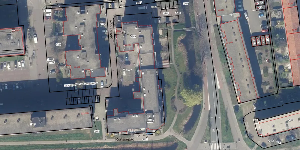 Het perceel waarop Ronsseweg 187 staat heeft een oppervlakte van 2720 m². Dit is een zeer groot perceel. De perceeloppervlakte wordt geregistreerd door het Kadaster. Gedetailleerde informatie over de maten van dit perceel kunt u vinden in het rapport Kadastrale kaart met maatvoering van Ronsseweg 187.