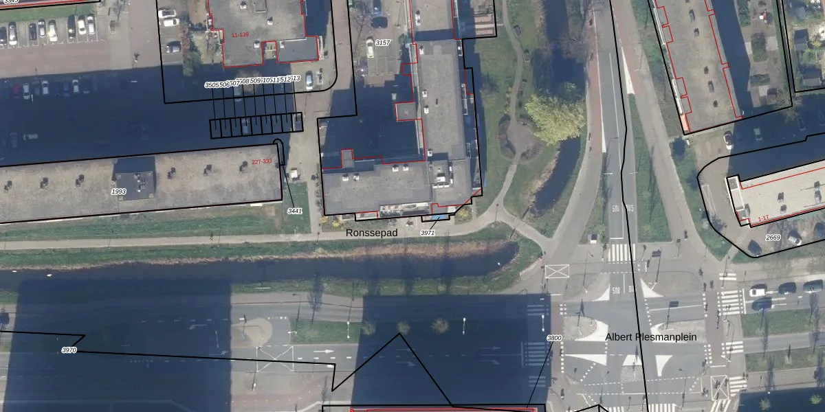Het perceel waarop Ronsseweg 217-f staat heeft een oppervlakte van 2720 m². Dit is een zeer groot perceel. De perceeloppervlakte wordt geregistreerd door het Kadaster. Gedetailleerde informatie over de maten van dit perceel kunt u vinden in het rapport Kadastrale kaart met maatvoering van Ronsseweg 217-f.