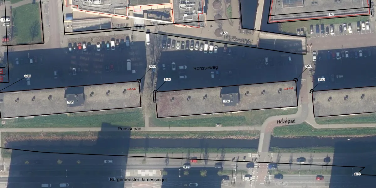 Ronsseweg 373 is gelegen op kadastraal perceel GDA01H1994. Deze kadastrale aanduiding is uniek en wordt gebruikt door het Kadaster om eigendomsrechten en andere zakelijke rechten vast te leggen. Het perceel maakt onderdeel uit van de kadastrale gemeente Gouda.