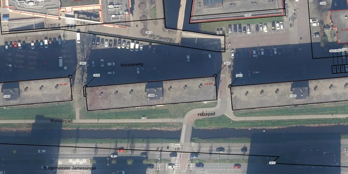 Ronsseweg 385 is gelegen op kadastraal perceel GDA01H1994. Deze kadastrale aanduiding is uniek en wordt gebruikt door het Kadaster om eigendomsrechten en andere zakelijke rechten vast te leggen. Het perceel maakt onderdeel uit van de kadastrale gemeente Gouda.