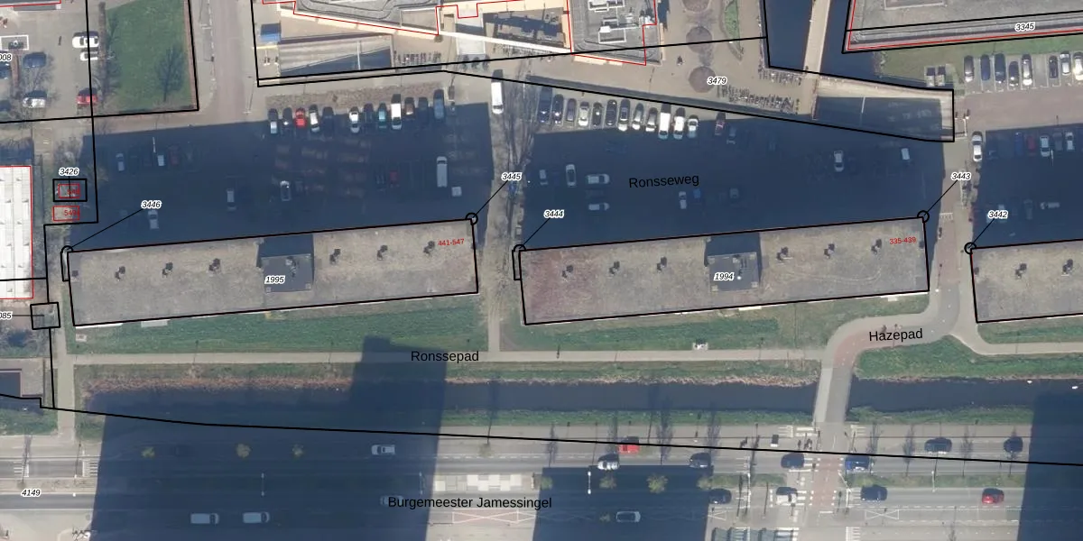 Ronsseweg 399 is gelegen op kadastraal perceel GDA01H1994. Deze kadastrale aanduiding is uniek en wordt gebruikt door het Kadaster om eigendomsrechten en andere zakelijke rechten vast te leggen. Het perceel maakt onderdeel uit van de kadastrale gemeente Gouda.