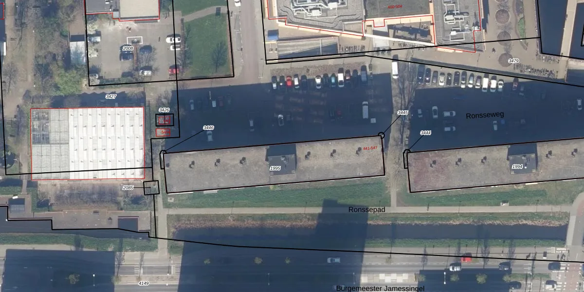 Ronsseweg 449 is gelegen op kadastraal perceel GDA01H1995. Deze kadastrale aanduiding is uniek en wordt gebruikt door het Kadaster om eigendomsrechten en andere zakelijke rechten vast te leggen. Het perceel maakt onderdeel uit van de kadastrale gemeente Gouda.