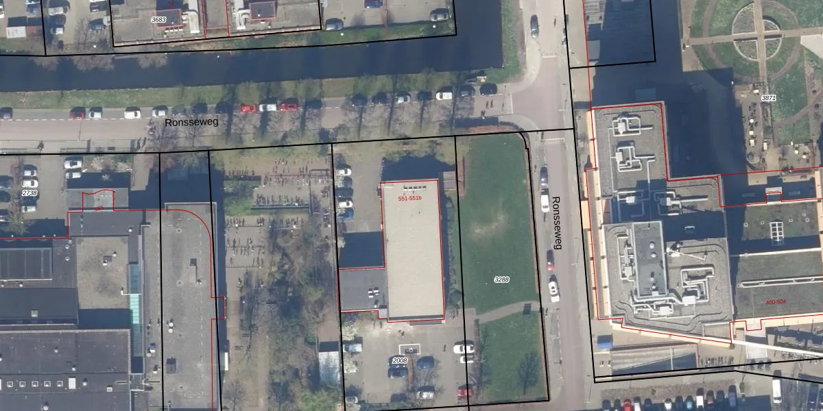Ronsseweg 551-b is gelegen op kadastraal perceel GDA01H2008. Deze kadastrale aanduiding is uniek en wordt gebruikt door het Kadaster om eigendomsrechten en andere zakelijke rechten vast te leggen. Het perceel maakt onderdeel uit van de kadastrale gemeente Gouda.