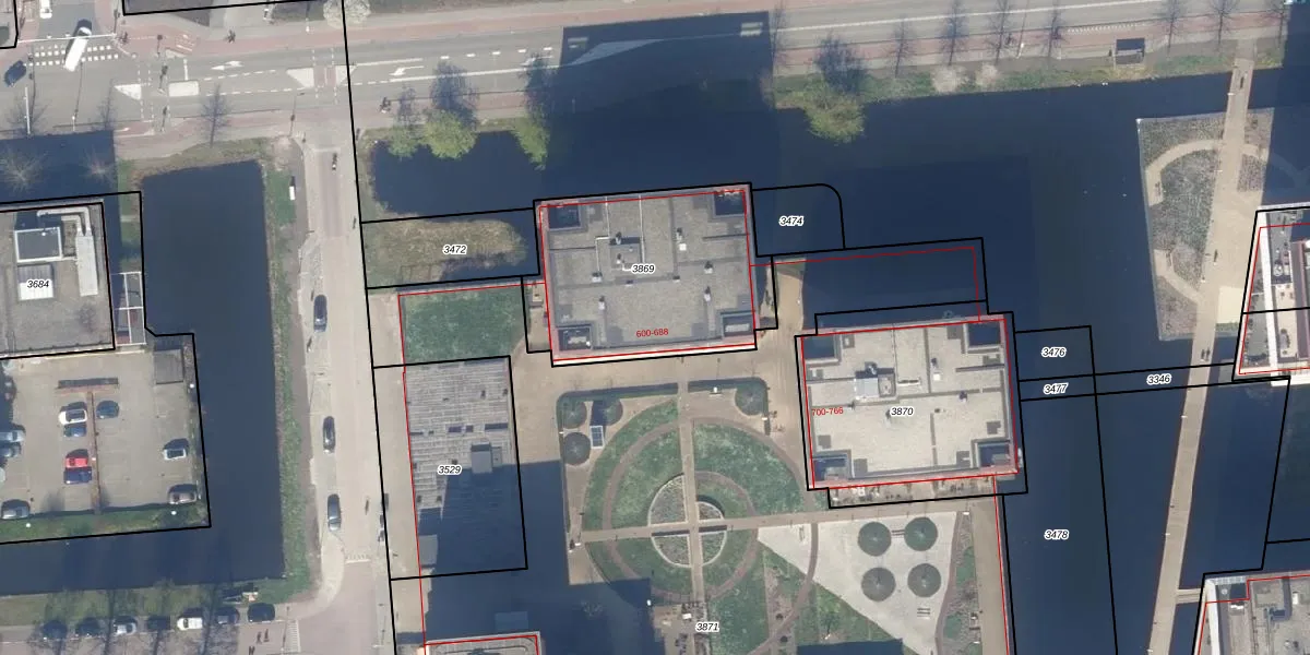 Het adres ligt op het perceel GDA01-H-3869, dat zich in de kadastrale gemeente Gouda bevindt. De oppervlakte van het perceel is 900 m². Dat is groter dan gemiddeld in Gouda, waar de gemiddelde perceeloppervlakte op 681,36 m² ligt. De grootste perceeloppervlakte in de kadastrale gemeente is 24,2 ha. De kleinste oppervlakte bedraagt 0 m². Er zijn 45 adressen aanwezig op het perceel. De huidige grenzen van het perceel zijn digitaal in de Basisregistratie Kadaster (BRK) geregistreerd op 12-09-2018.
