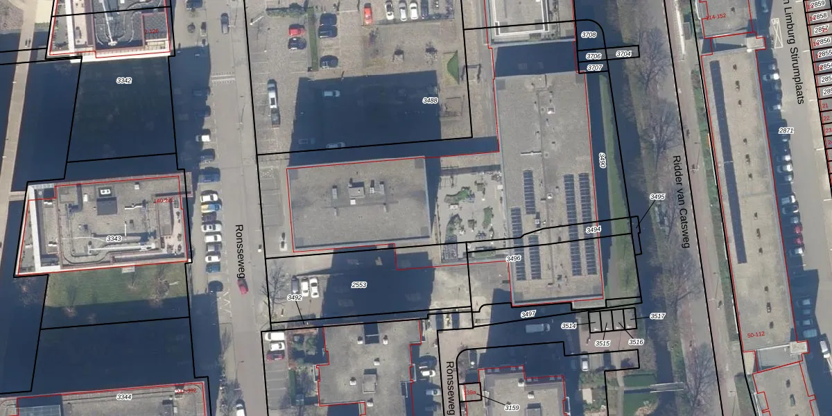 Het perceel waarop Ronsseweg 9-202 staat heeft een oppervlakte van 2935 m². Dit is een zeer groot perceel. De perceeloppervlakte wordt geregistreerd door het Kadaster. Gedetailleerde informatie over de maten van dit perceel kunt u vinden in het rapport Kadastrale kaart met maatvoering van Ronsseweg 9-202.
