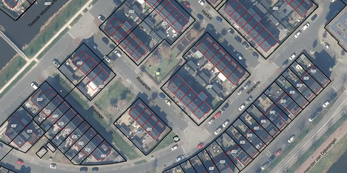 Het perceel waarop Rosarium 10 staat heeft een oppervlakte van 1395 m². Dit is een zeer groot perceel. De perceeloppervlakte wordt geregistreerd door het Kadaster. Gedetailleerde informatie over de maten van dit perceel kunt u vinden in het rapport Kadastrale kaart met maatvoering van Rosarium 10.