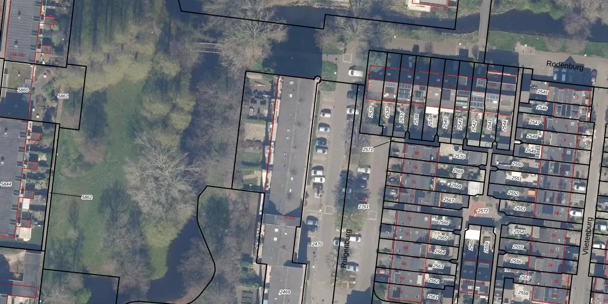 Het adres is gelegen op perceel 2469 in de sectie M en de kadastrale gemeente Gouda. De kadastrale aanduiding is aldus GDA01-M-2469. De gemiddelde perceeloppervlakte in de kadastrale gemeente Gouda is 678,78 m². Dit perceel is met zijn 2003 m² dus groter dan gemiddeld. De grootste perceeloppervlakte in de kadastrale gemeente is 24,2 ha. De kleinste oppervlakte bedraagt 0 m². Op het perceel zijn 74 adressen aanwezig. De huidige grenzen van het perceel zijn digitaal in de Basisregistratie Kadaster (BRK) geregistreerd op 11-12-2006.