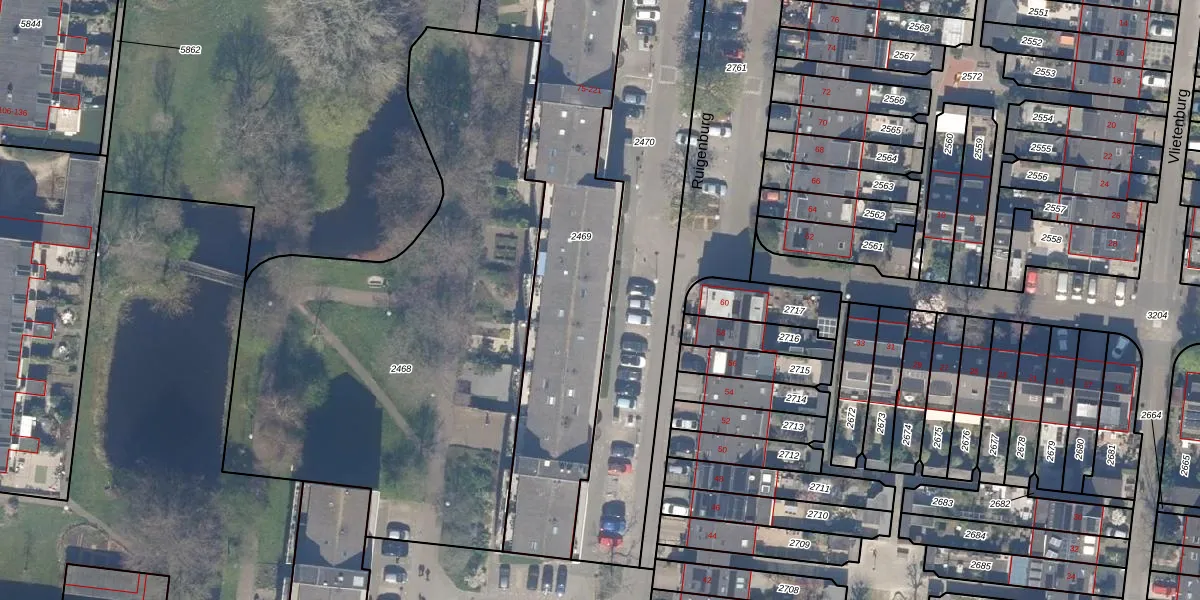 Het perceel waarop Ruigenburg 85 staat heeft een oppervlakte van 2003 m². Dit is een zeer groot perceel. De perceeloppervlakte wordt geregistreerd door het Kadaster. Gedetailleerde informatie over de maten van dit perceel kunt u vinden in het rapport Kadastrale kaart met maatvoering van Ruigenburg 85.