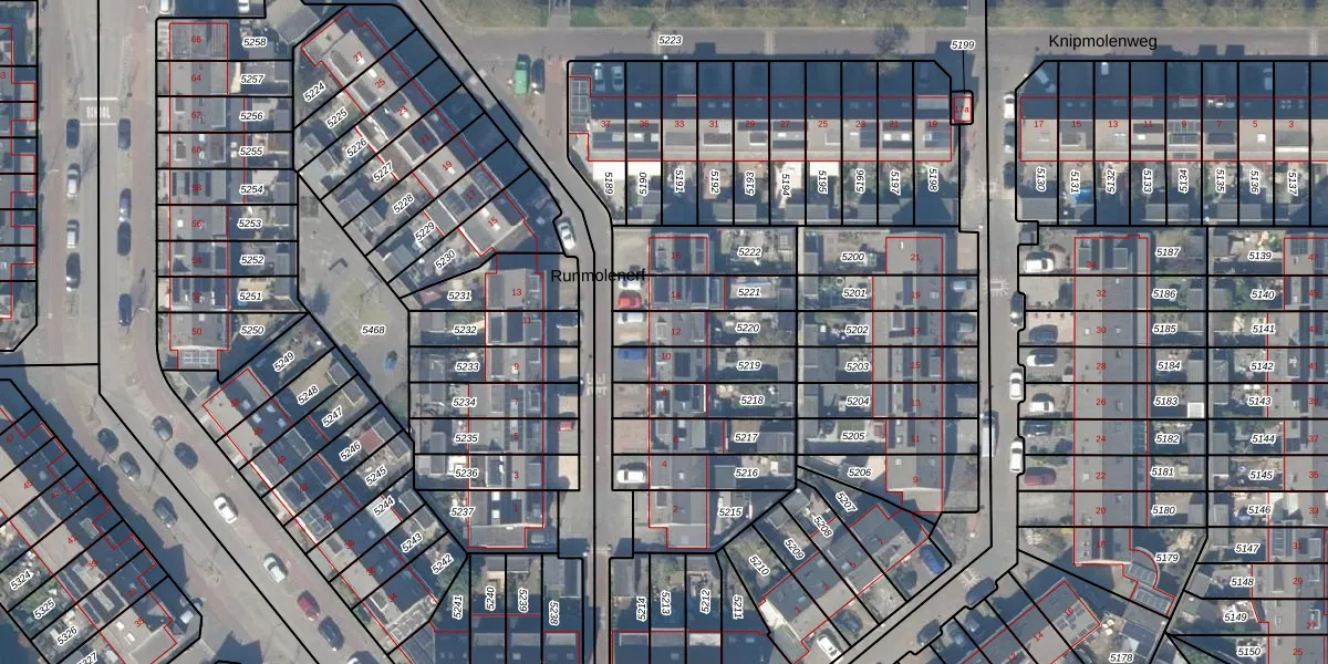 Runmolenerf 12 is gelegen op kadastraal perceel GDA01K5220. Deze kadastrale aanduiding is uniek en wordt gebruikt door het Kadaster om eigendomsrechten en andere zakelijke rechten vast te leggen. Het perceel maakt onderdeel uit van de kadastrale gemeente Gouda.