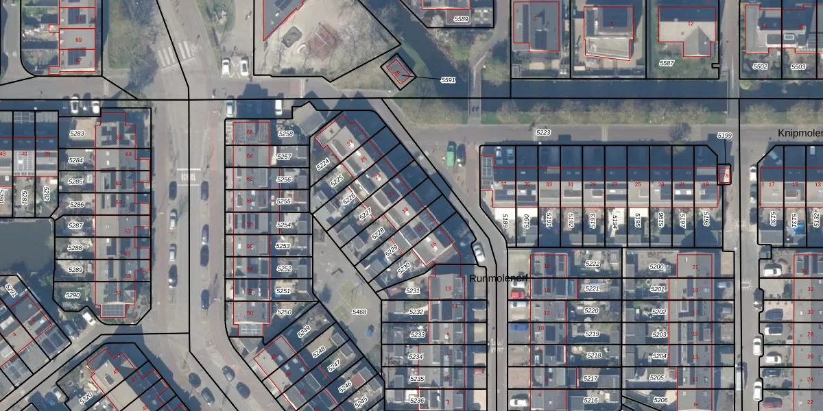 Runmolenerf 19 is gelegen op kadastraal perceel GDA01K5228. Deze kadastrale aanduiding is uniek en wordt gebruikt door het Kadaster om eigendomsrechten en andere zakelijke rechten vast te leggen. Het perceel maakt onderdeel uit van de kadastrale gemeente Gouda.