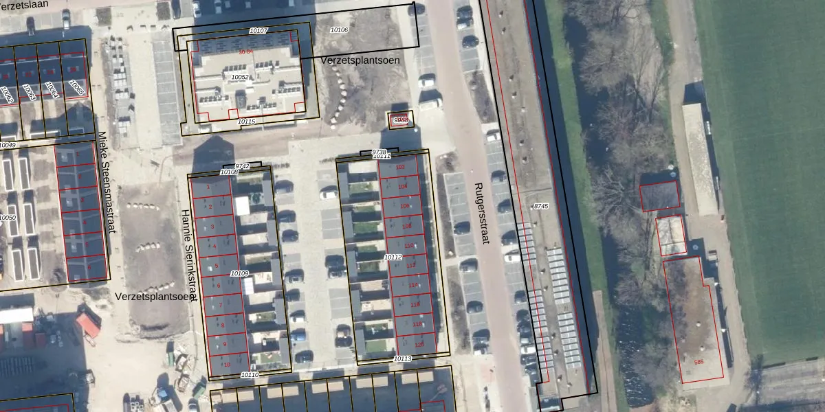 Rutgersstraat 106 is gelegen op kadastraal perceel GDA01K10112. Deze kadastrale aanduiding is uniek en wordt gebruikt door het Kadaster om eigendomsrechten en andere zakelijke rechten vast te leggen. Het perceel maakt onderdeel uit van de kadastrale gemeente Gouda.