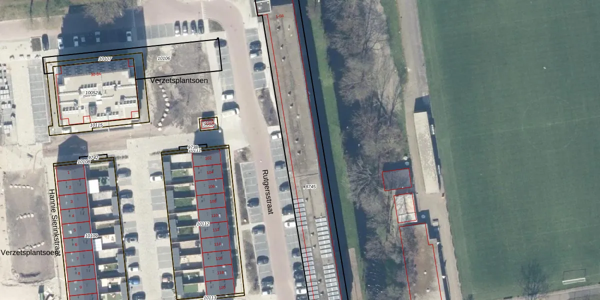 Het perceel waarop Rutgersstraat 21 staat heeft een oppervlakte van 1464 m². Dit is een zeer groot perceel. De perceeloppervlakte wordt geregistreerd door het Kadaster. Gedetailleerde informatie over de maten van dit perceel kunt u vinden in het rapport Kadastrale kaart met maatvoering van Rutgersstraat 21.
