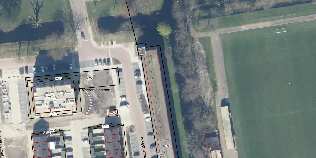 Het perceel waarop Rutgersstraat 45 staat heeft een oppervlakte van 1464 m². Dit is een zeer groot perceel. De perceeloppervlakte wordt geregistreerd door het Kadaster. Gedetailleerde informatie over de maten van dit perceel kunt u vinden in het rapport Kadastrale kaart met maatvoering van Rutgersstraat 45.