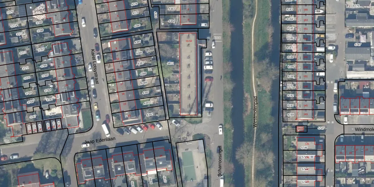Scharroosingel 42 is gelegen op kadastraal perceel GDA01K5811. Deze kadastrale aanduiding is uniek en wordt gebruikt door het Kadaster om eigendomsrechten en andere zakelijke rechten vast te leggen. Het perceel maakt onderdeel uit van de kadastrale gemeente Gouda.
