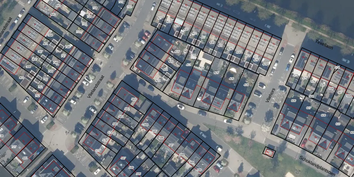 Gebruik de zoekbalk of klik op een perceel voor informatie over de adressen binnen dit perceel.